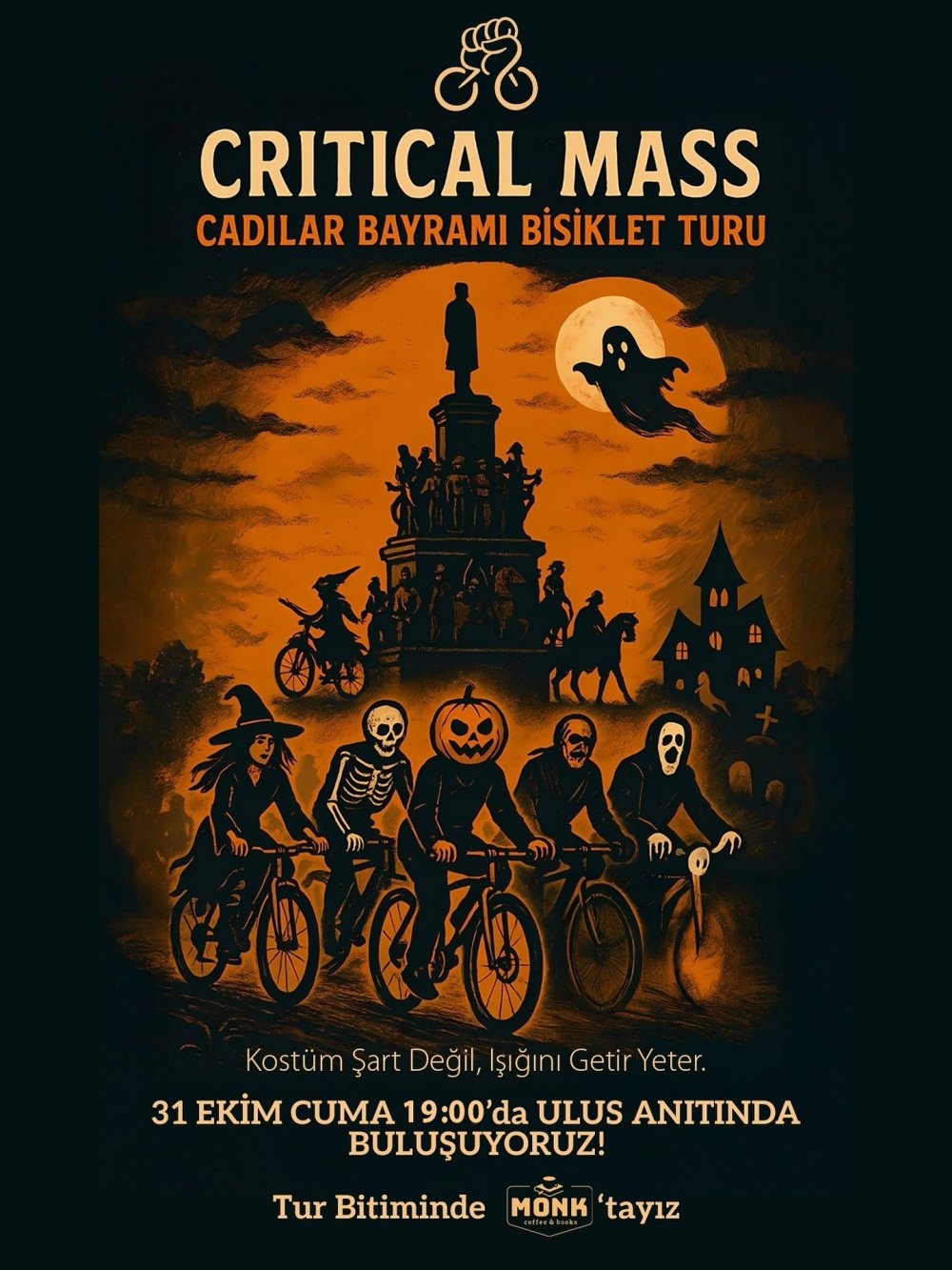 31 Ekim bu yıl hem Halloween hem de Critical Mass gecesi! Bu tur sıradan olmayacak — biraz ışık, biraz ses, bolca enerjiyle yollardayız!